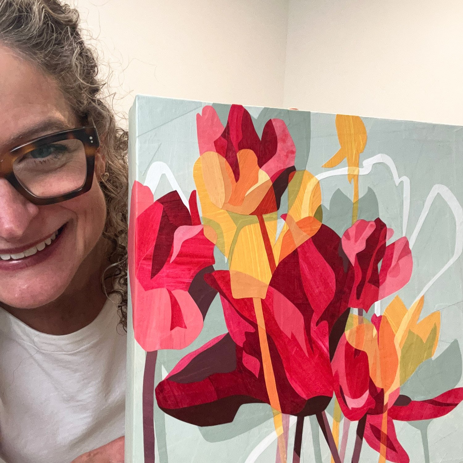 10” x 10” original collage artwork. Made with hand painted paper swatches collaged to panel. Design continues around edges so no frame is needed. Wired and ready to hang.